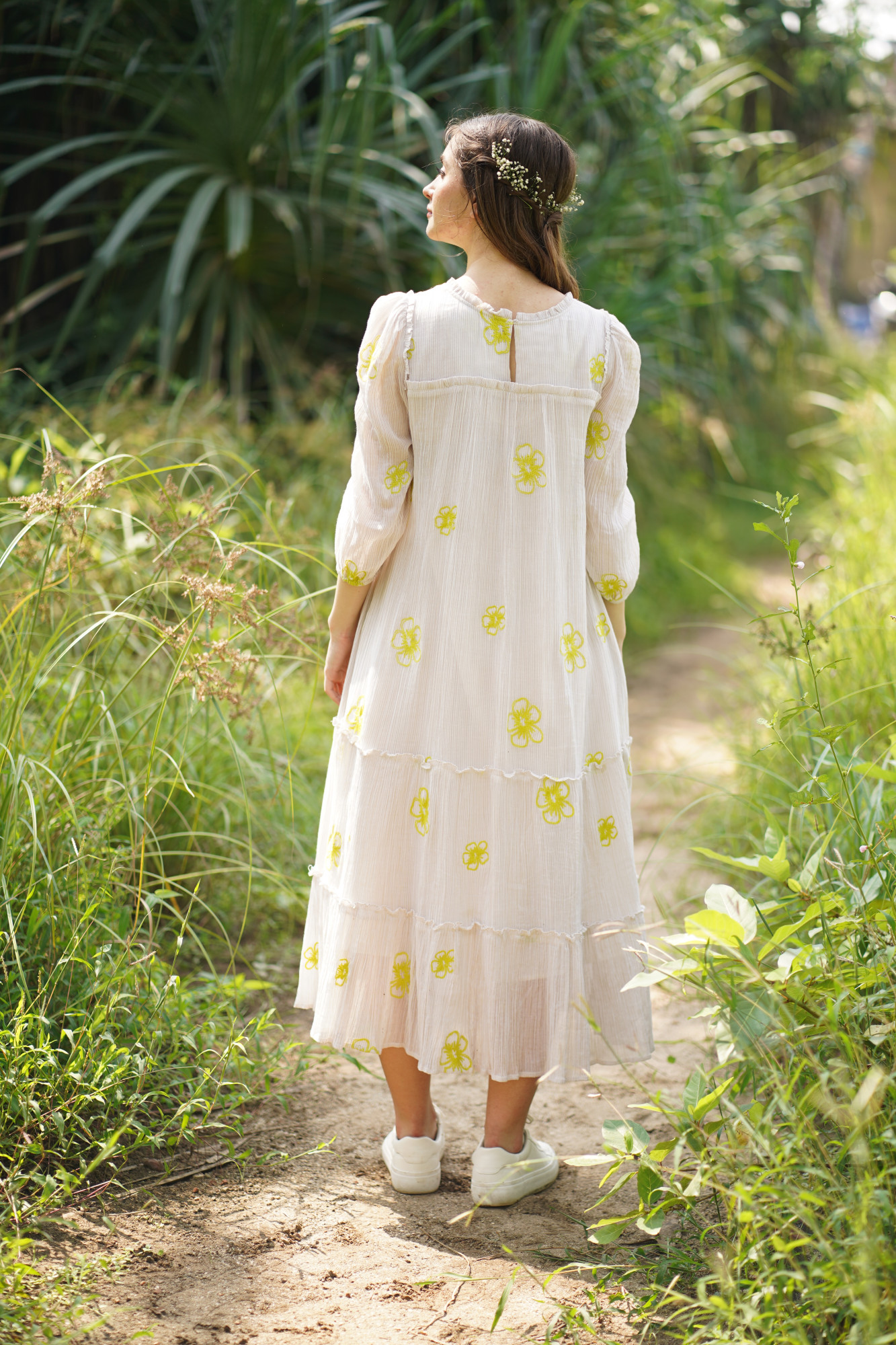 Crushed cotton front & back embroidered Dress