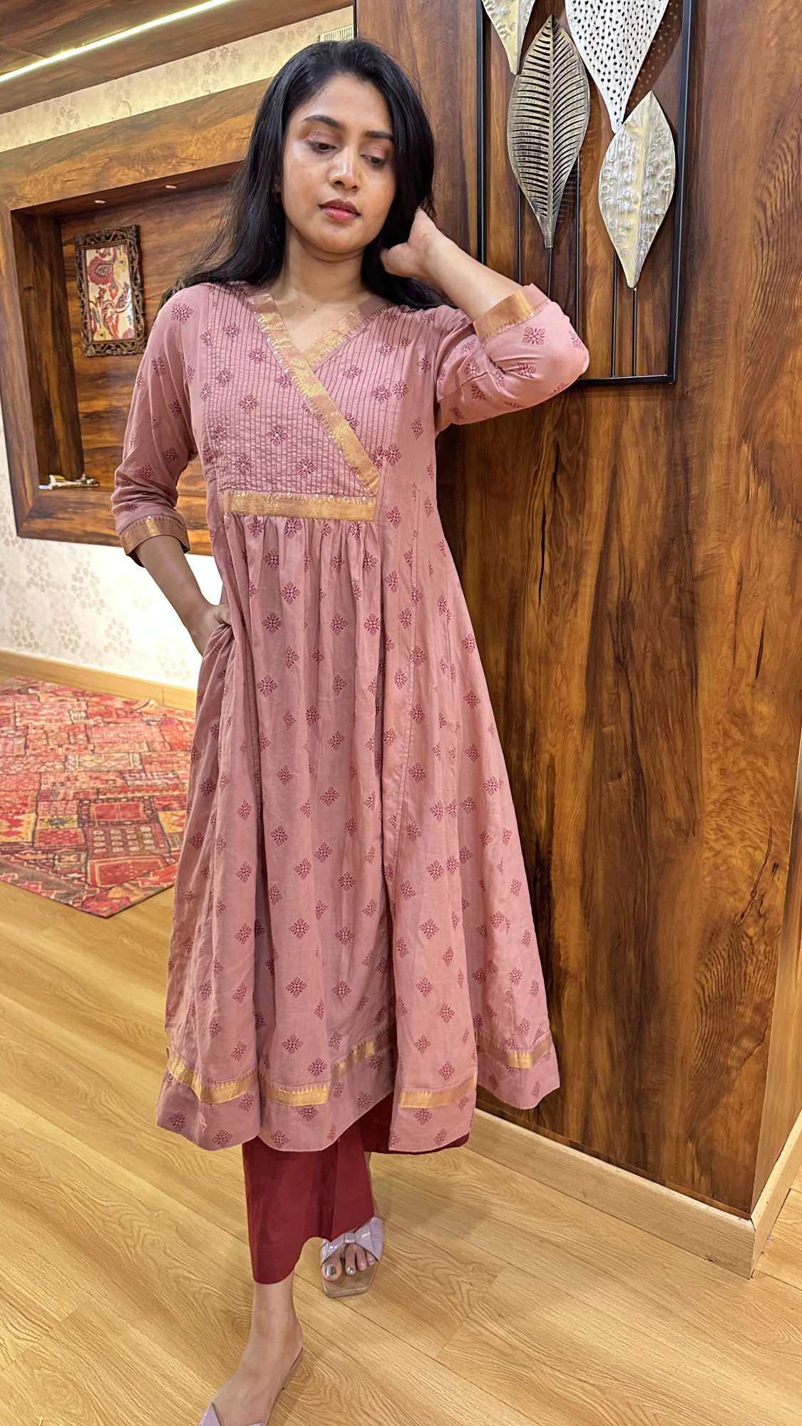 Mangalgiri cotton flared kurta Paired with straight pants