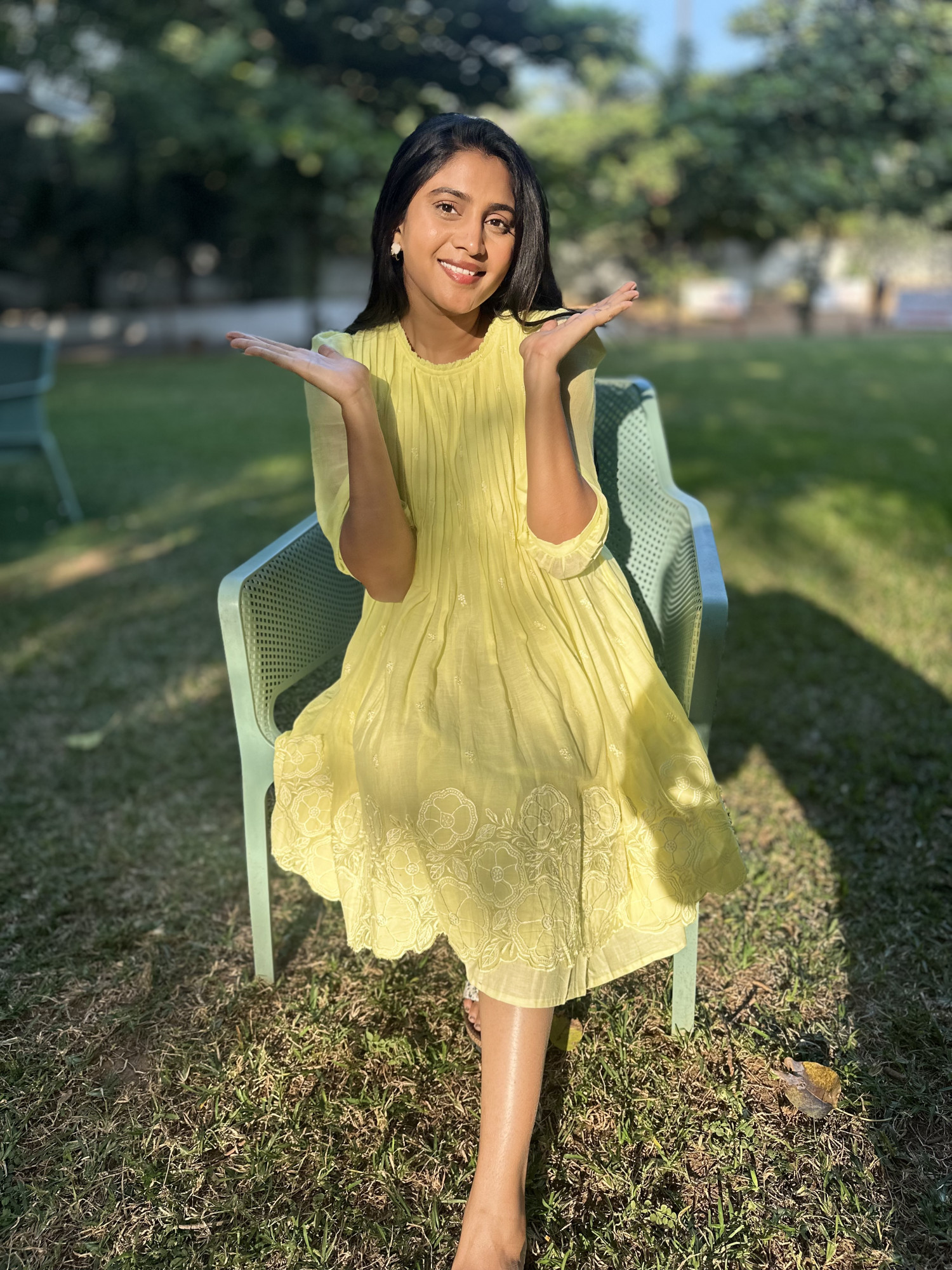 Mul cotton embroidered & appliqué detailed double layered Dress