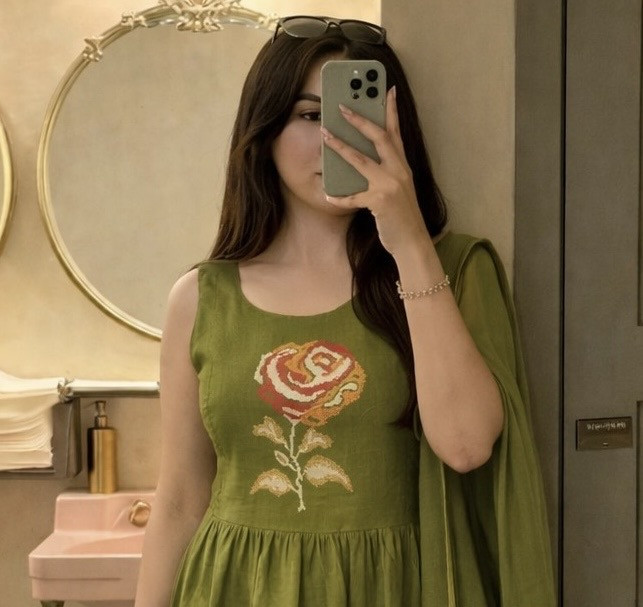 Pure cotton embroidered kurta set with 3/4 sleeves