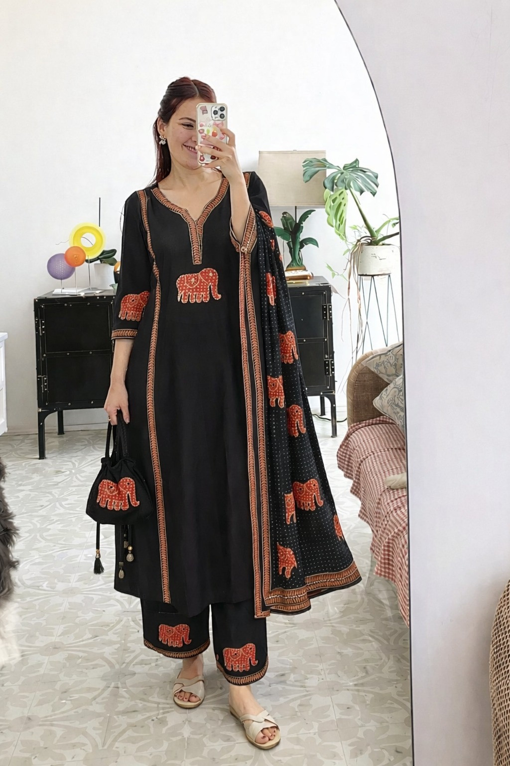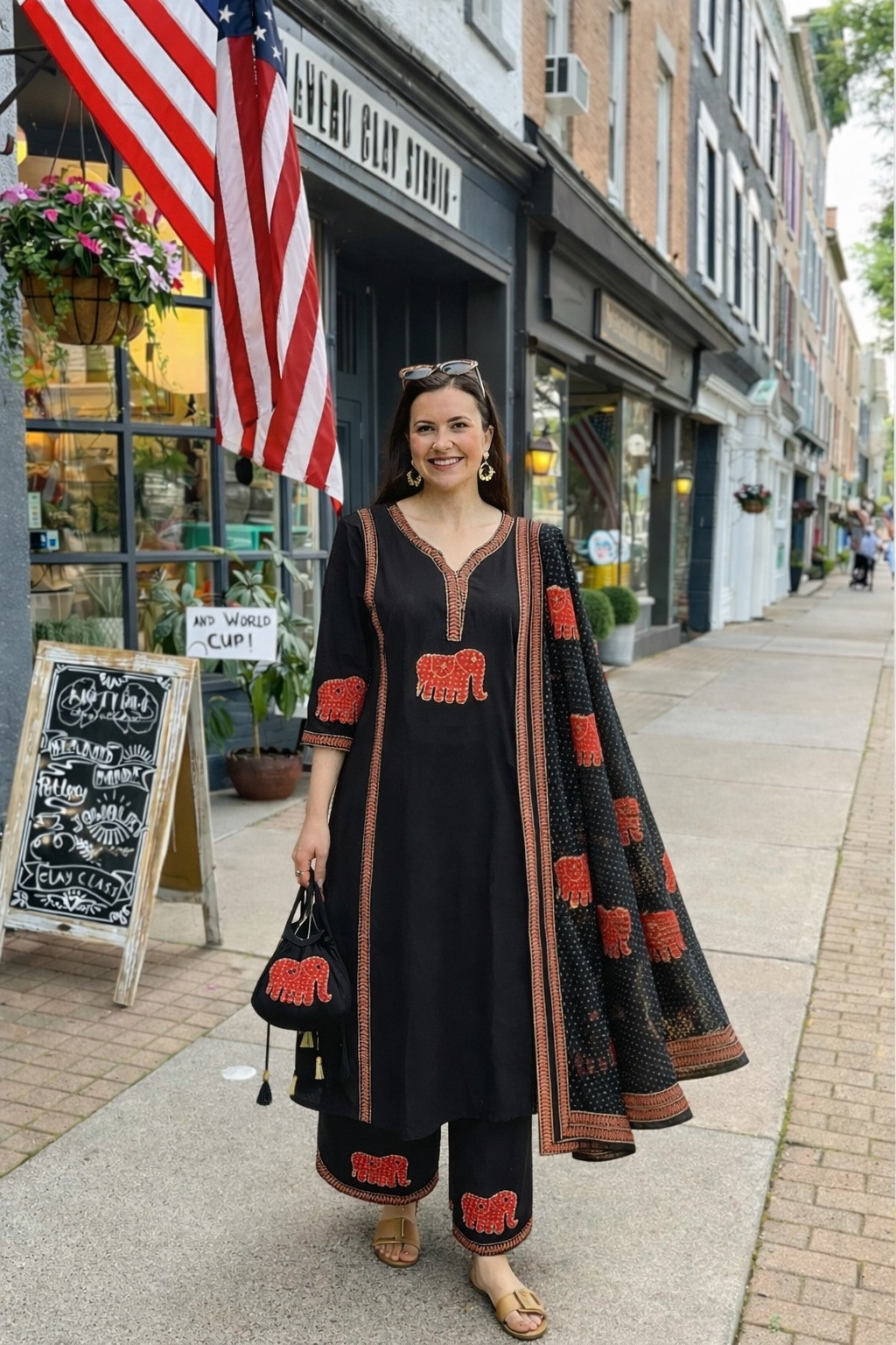 Style: Kurta Neckline: Round Sleeve Length: 3/4th Model’s Height: 5’7” ft.