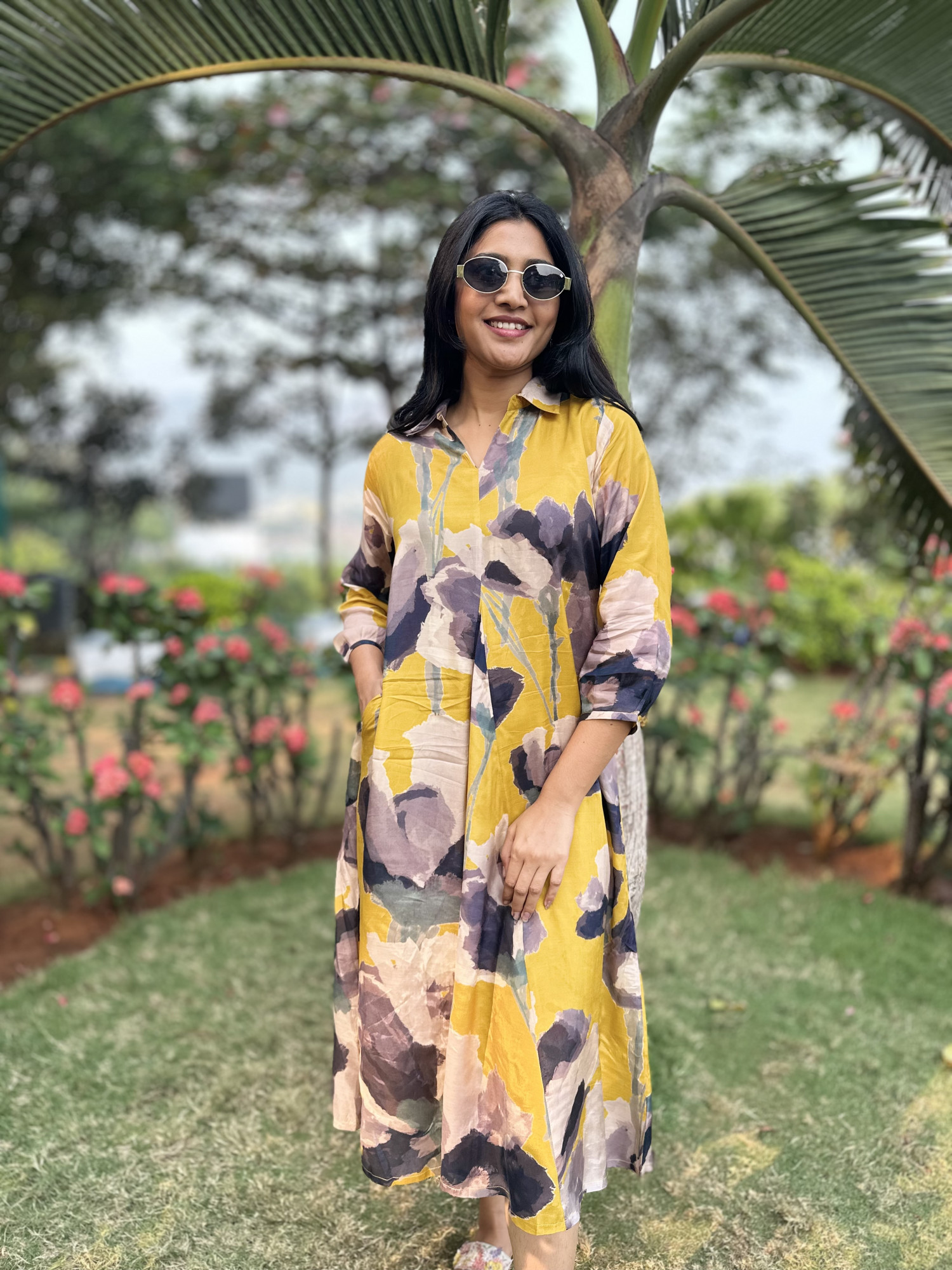 Pure muslin Digital Printed Dress with pockets